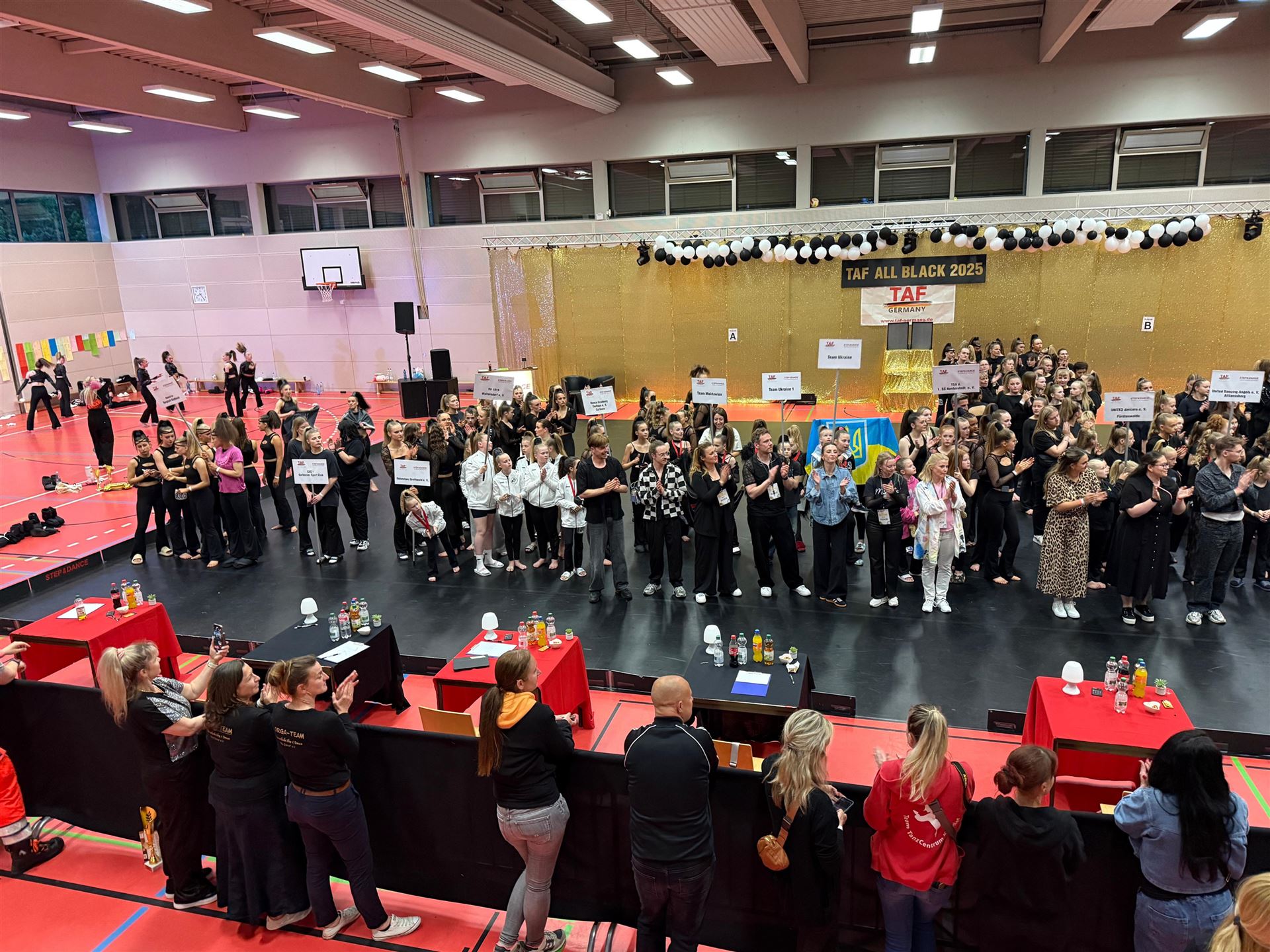 Es war ein unvergesslicher Moment, als wir gemeinsam die Saison mit unserem ersten Turnier, dem TAF AllBlack Turnier, eröffneten. Die Halle in Strausberg bei Berlin öffnete auch in diesem Jahr seine Pforten – alle Kostüme in elegantem Schwarz, was die Atmosphäre besonders machte. Rund 450 begeisterte Tänzer aus ganz Deutschland reisten an und auch Tänzer aus verschiedenen Ländern wie Moldawien, die Ukraine und Finnland, haben sich eingefunden, um ihre Leidenschaft für Disco Dance zu zeigen und gemeinsam zu tanzen.