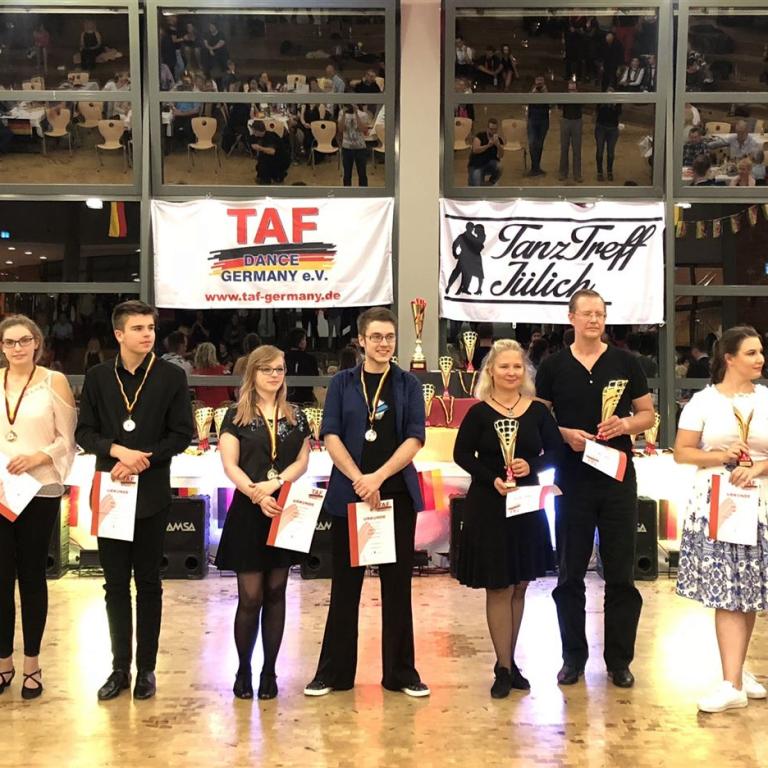 Sieger der höchsten Discofox Klasse wurden André Bodscheller und Anna Höhl. Neben ihrer Slow- und Quick Darbietung konnten sie mit ihrer Kür „LaLaLand“ die Wertungsrichter überzeugen. Bei Salsa ging der Sieg an Fabian Heinen und Julia Albrecht. Die weiteren Sieger und Ergebnisse unter: www.taf-germany.de / Turnier + Ergebnisse.