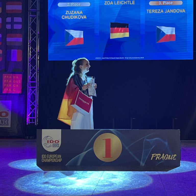 Auch in diesem Jahr konnte wieder die deutsche Nationalhymne gesungen werden, wenn auch nicht wie schon mal, in der sogenannten Königsklasse – den Formationen. Denn Zoa Leichtle schaffte es in der Soloklasse Junioren 2 ganz nach oben und wurde Europameisterin.