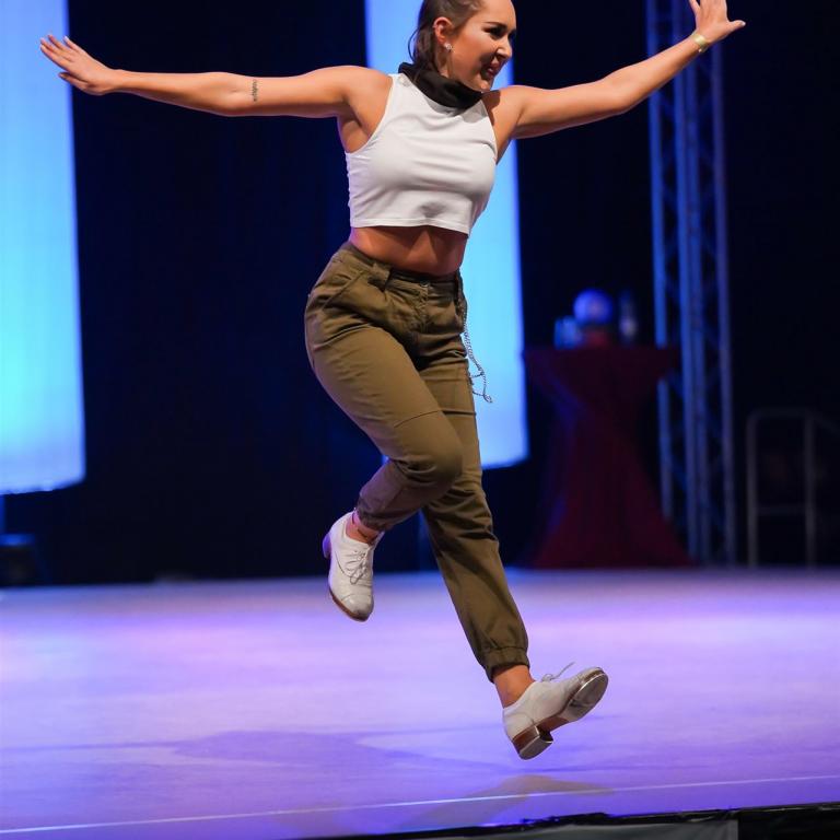 Am Samstag ging es früh los. Um 07:15 Uhr fanden die ersten Stellproben statt und ließen schon erahnen, dass der Tag es in sich haben würde. Voller Leidenschaft und Emotionen steppten die Tänzer, für einige bis ins Finale. Die Ergebnisse hätten nicht knapper sein können. In der Kategorie Solo-Girls der Hauptgruppe wurde Kira von Kayser Deutsche Meisterin, dicht gefolgt von Jana Phillip auf Platz 2 und Noemi Simon-Couceiro auf dem 3. Platz. Bei den Männern wurde Simon Schäfer Deutscher Meister gefolgt von Fynn Jona Hüggelmeyer auf Platz 2 und Florian Bowitz auf Platz 3.