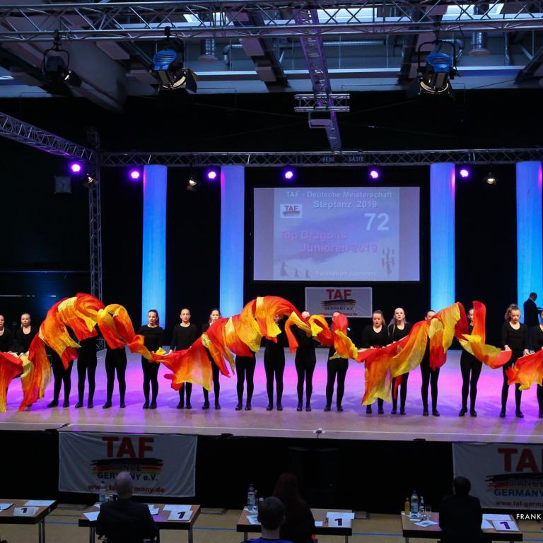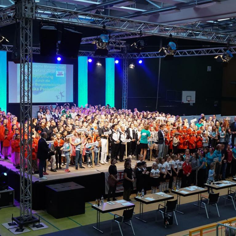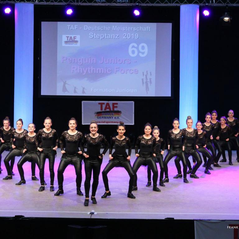 Am 11.10.-12.10.2019 fand in Gütersloh die TAF Deutsche Meisterschaft Steptanz statt, ein Feuerwerk der schnellen Füße. Ein großartiges Team um Gabi Neumann empfing die Wertungsrichter, Allison Forrester, Carolin Beyer, Vesna Huber, Bea Widmann, Ralf Knobloch, Frank Beyer und Hermann Trefz, sowie Protokoller Rouven Grassel und Supervisor Sebastian Schaefer.