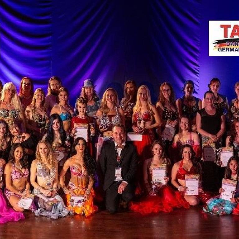 Am Samstagvormittag starteten wie üblich die Mini Kids und Kinder in Ihren Disziplinen und Altersklassen. Das Ressort freut sich sehr über den regen Zuwachs im Bereich der Mini Kids und Kinder, der von Jahr zu Jahr stetig steigt. Bis zur ersten Pause gegen 14:00 Uhr erkämpften sich die Nachwuchstänzerinnen und Tänzer einige Meistertitel und wurden mit tosendem Applaus gefeiert. In den folgenden Blöcken traten die Junioren und Hauptgruppen in den Kategorien Orientalisch Klassisch, Contemporary, Folklore und Show-Fantasie an. Der Samstag schloss mit einer großartigen stimmungsvollen Siegerehrung, aus der zahlreiche neue Deutsche Meister hervorgingen. Dank unseres mittlerweile im sechsten Jahr anwesenden TAF Protokoller Sebastian Schäfer und die Moderationskünste von Gabriela und Michael, wurde die Timeline eingehalten. Ein Dank geht an dieser Stelle an unsere internationale Fachjury vertreten durch Dahab Sahar, Artemis, Howaida Vernalis, Shahrazad, Gabriela Samra und Sybilla, die für eine ausgefallene Kollegin spontan eingesprungen ist. Für eine perfekte Hintergrund- und Backstagekoordination sorgte in diesem Jahr Verahzad.