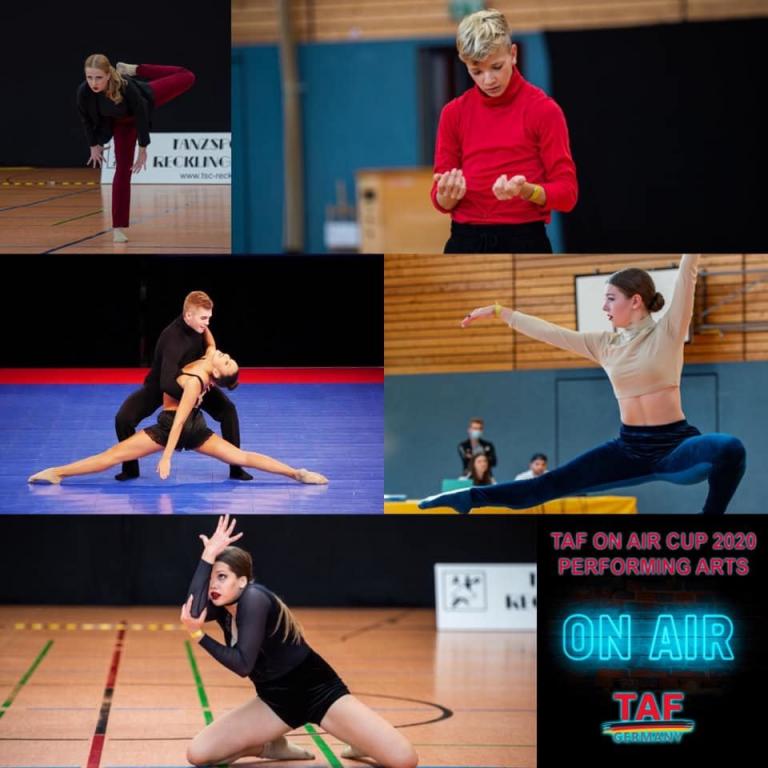 Auch die veschiedenen Disziplinen des TAF-Ressorts der Performing Arts, mit Ballett, Contemporary Dance, Show Dance, Musical Dance, Show Only, Stepptanz, haben eine Möglichkeit gefunden in den momentanen Zeiten für ein Turnier, wenn auch ungewöhnlich. Virtuell wurde der 1. TAF ON AIR CUP PERFORMING ARTS 2020 ausgetragen. Bis Mitte Dezember 2020 konnten alle Tänzerinnen und Tänzer der Altersklassen Kinder, Junioren, Erwachsene in den Startklassen Solo und Duo ihre Videos einreichen, die dann von einer siebenköpfigen internationalen Jury bewertet wurden. Das Besondere dabei war nicht nur die Sichtung über Videos, sondern das es außer der Alters- und Startklassen keine weitere Einteilung gab. So wurde eine Ballett Aufführung im gleichen Turnier wie z.B. ein Contemporary Dance oder Stepptanz bewertet. Es ging rein um die Qualität und Performance und so konnten manche Teilnehmerinnen und Teilnehmer auch mehrfach Tänze einreichen mit verschiedenen Shows. Auch ein Cross Over des PA Disziplinen war möglich.